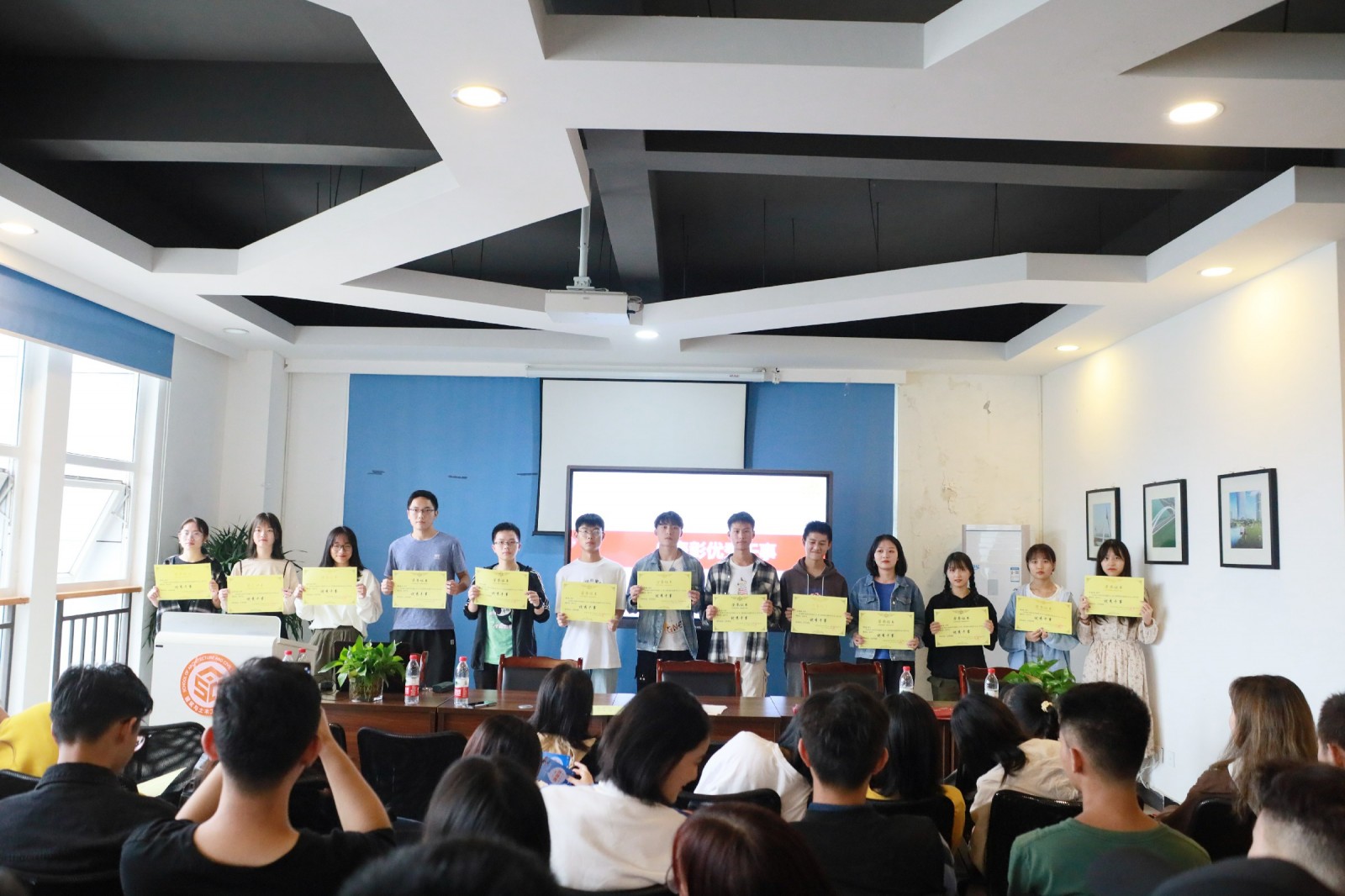 大会第五项,颁发优秀部门、干事奖状,此次获奖人员有组织部的焦姣、朱珂雅;来自志工部的张琳玉、马海浪等共13人。