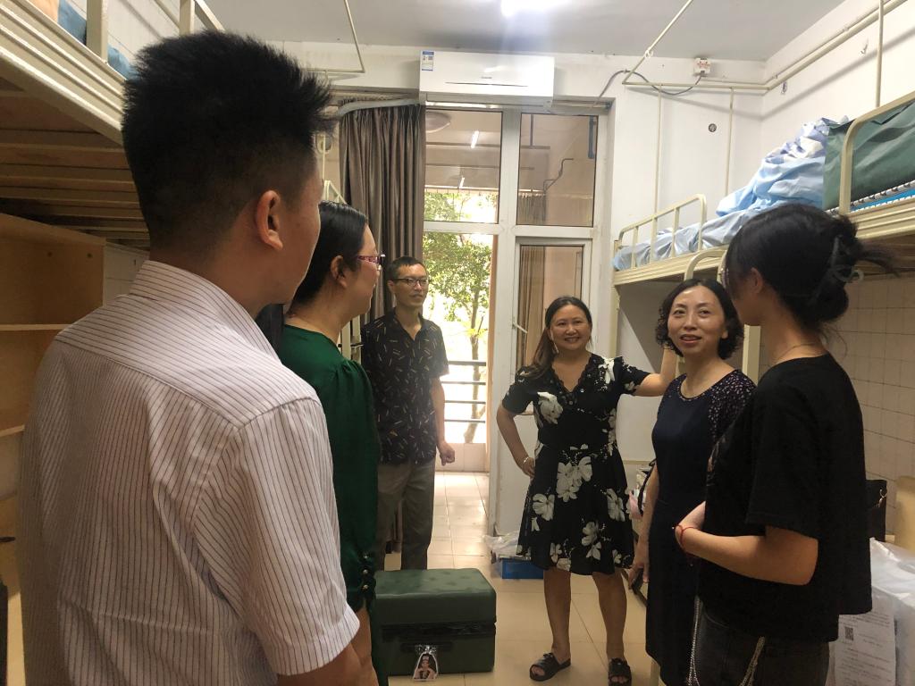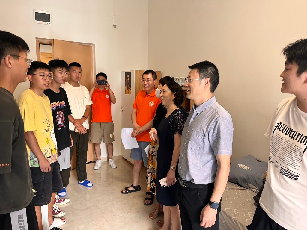 新生报到点,了解询问迎新工作开展情况,问候关怀工作人员和学生志愿者,与前来报到的新生亲切交流,及时了解学生需求。他们对学院迎新工作给予充分肯定并向迎新工作者的辛勤付出表示感谢,叮嘱强化迎新服务工作的精准性、细致性。