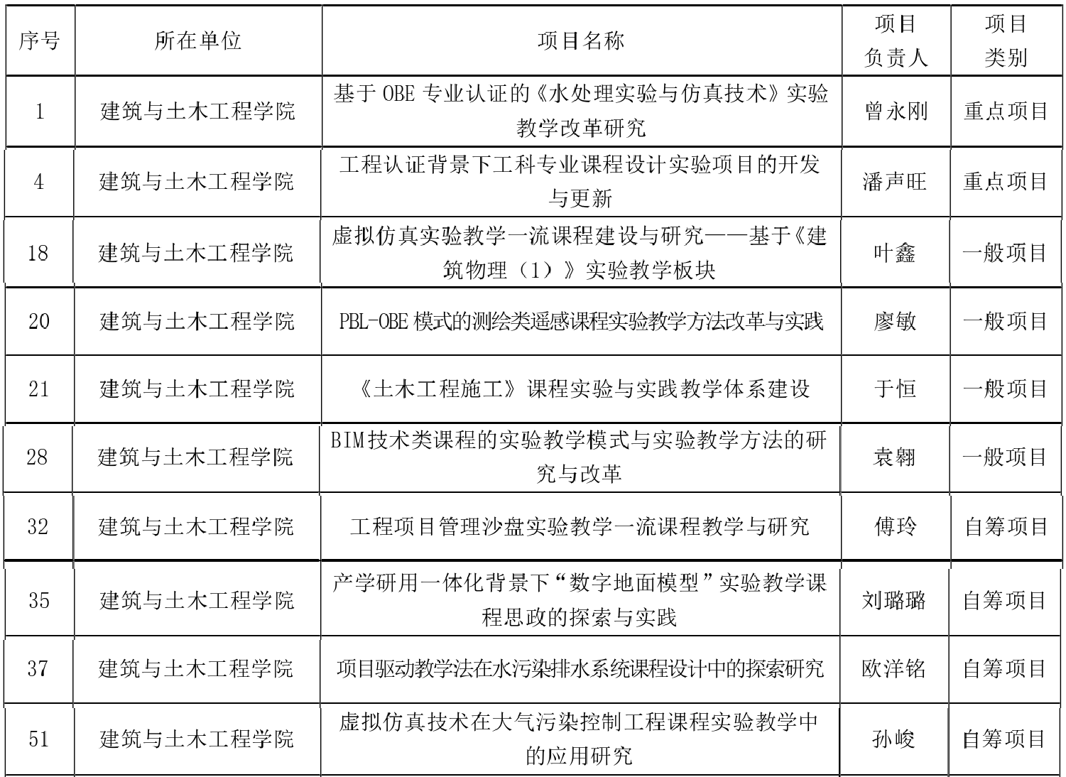 共立项十项实验教学研究与改革项目,其中,重点项目2项,一般项目4项,自筹项目4项,立项数在全校各学院中名列前茅。