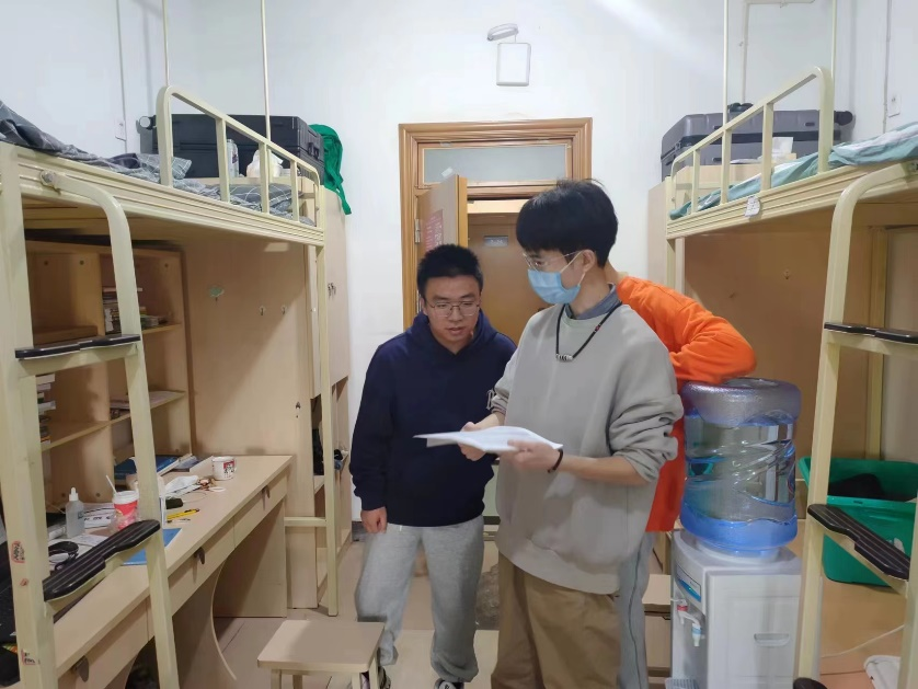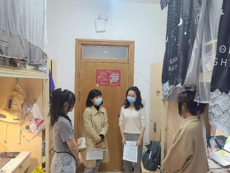 在走访的过程中,老师们亲切地与同学们打招呼,并询问同学们家乡是哪里,到校后的衣食住行、生活是否习惯等方面的问题,鼓励大家积极与老师、学长学姐们多多沟通交流,做好大学期间的人生规划,每一年、每一学期都要有自己的目标,并要朝着这个目标去努力、去奋斗,为自己的大学生活添彩,为自己的人生润色。全体老师特别提醒同学们注意寝室用电安全,提高安全防范能力,注意防火防盗防诈骗,做好防疫措施。同学们纷纷表示正在积极地适应大学生活,一定不会虚度光阴,倍加珍惜在校学习时光。