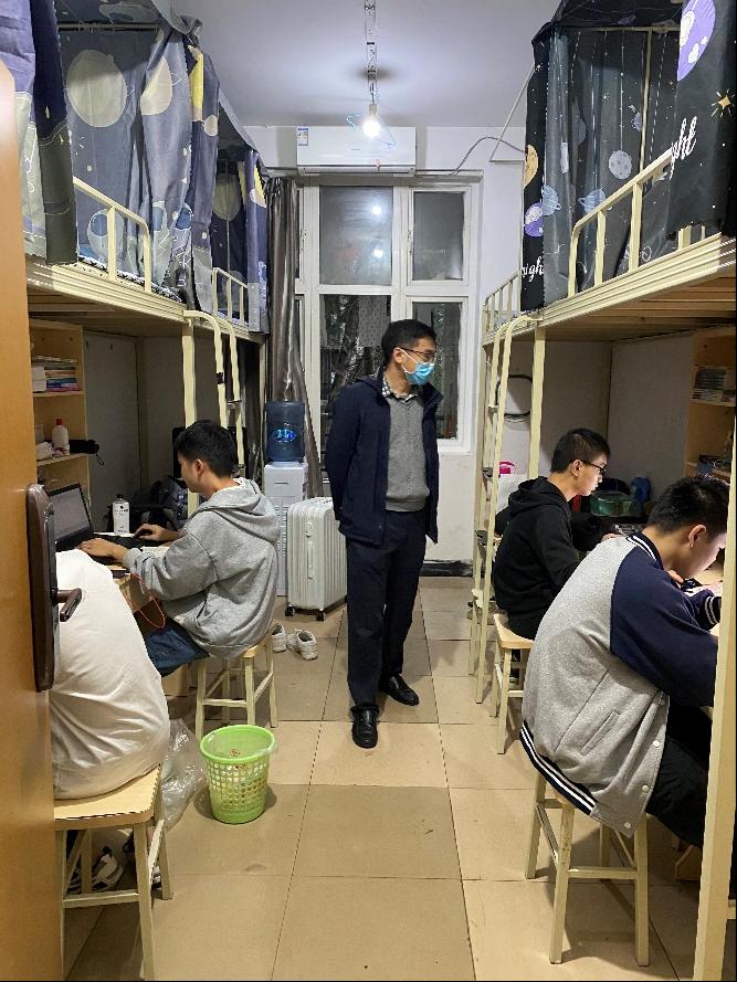 在走访的过程中,两位老师新切地与同学们打招呼,并询问同学们入学以来衣食住行情况以及是否适应大学生活,并鼓励同学们继续做好疫情防护。同学们纷纷表示目前正在积极地适应新的学习、生活环境,积极配合各项防疫措施。杨何老师在与同学们交谈中提到:“进入大学后,大家要尽快地适应大学生活,转变身份,同学之间要相互帮助,期间如果遇到困难应积极向班主任、老师们寻求帮助。同时,大学期间要养成良好的生活习惯与学习习惯,以学习为第一要务,做好目标规划并积极努力去实现。”蒲云辉老师希望同学们:“在大学期间,要认真学好知识,砥砺品行,志存高远,认真规划大学生活,争取在大学四年获得大的成长与进步。