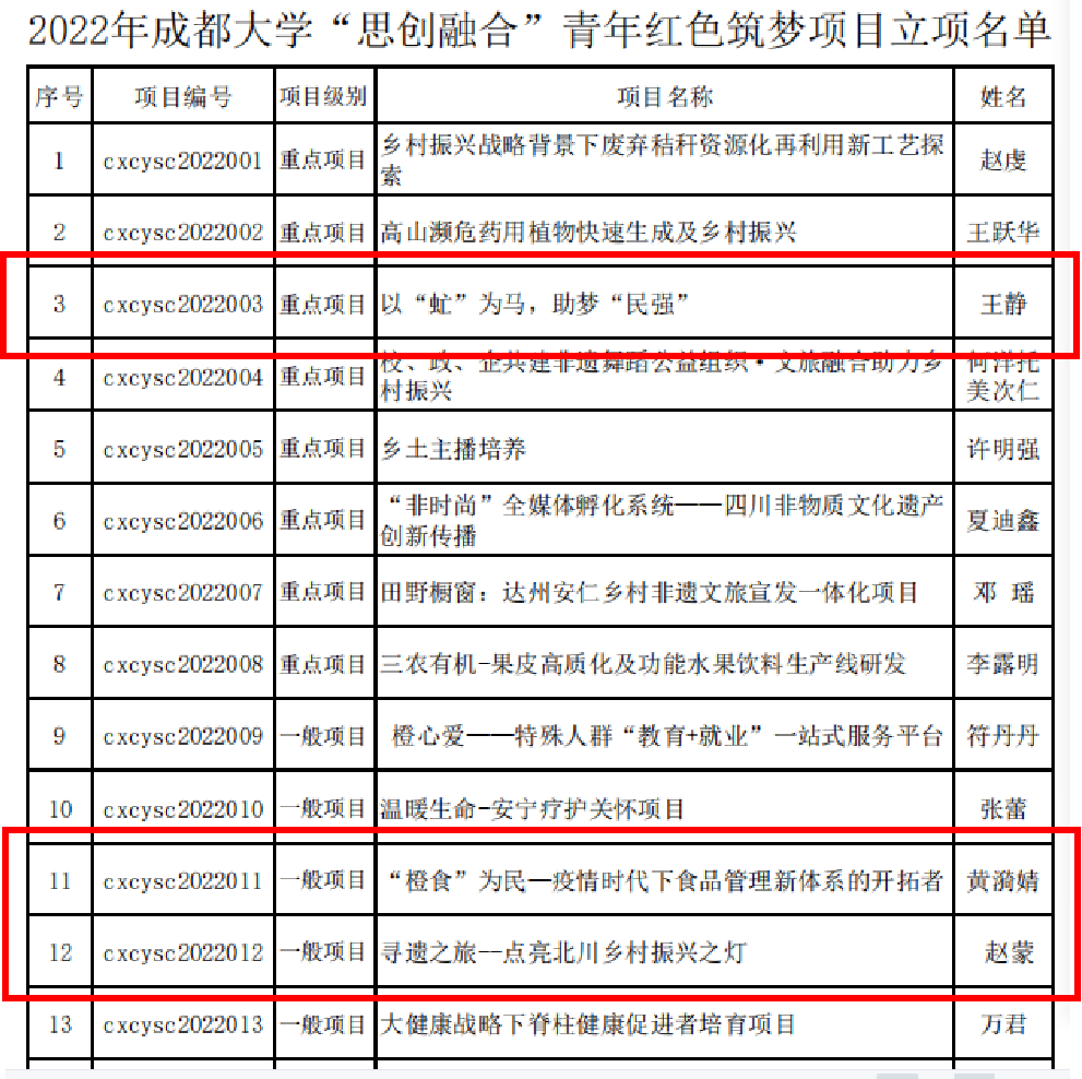 附:成都大学关于2022 “思创融合”青年红色筑梦项目立项名单的公示,//cxcyxy.amwm.net/info/1016/2931.htm