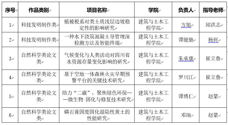 在成都大学第十三届“挑战杯”大学生课外学术科技作品竞赛中按摩无码 学子获得立项6项(如下表所示),按摩无码 学子开拓创新意识、启迪创意思维、提升创造能力,积极投入科研,用实际行动为学院增光添彩。