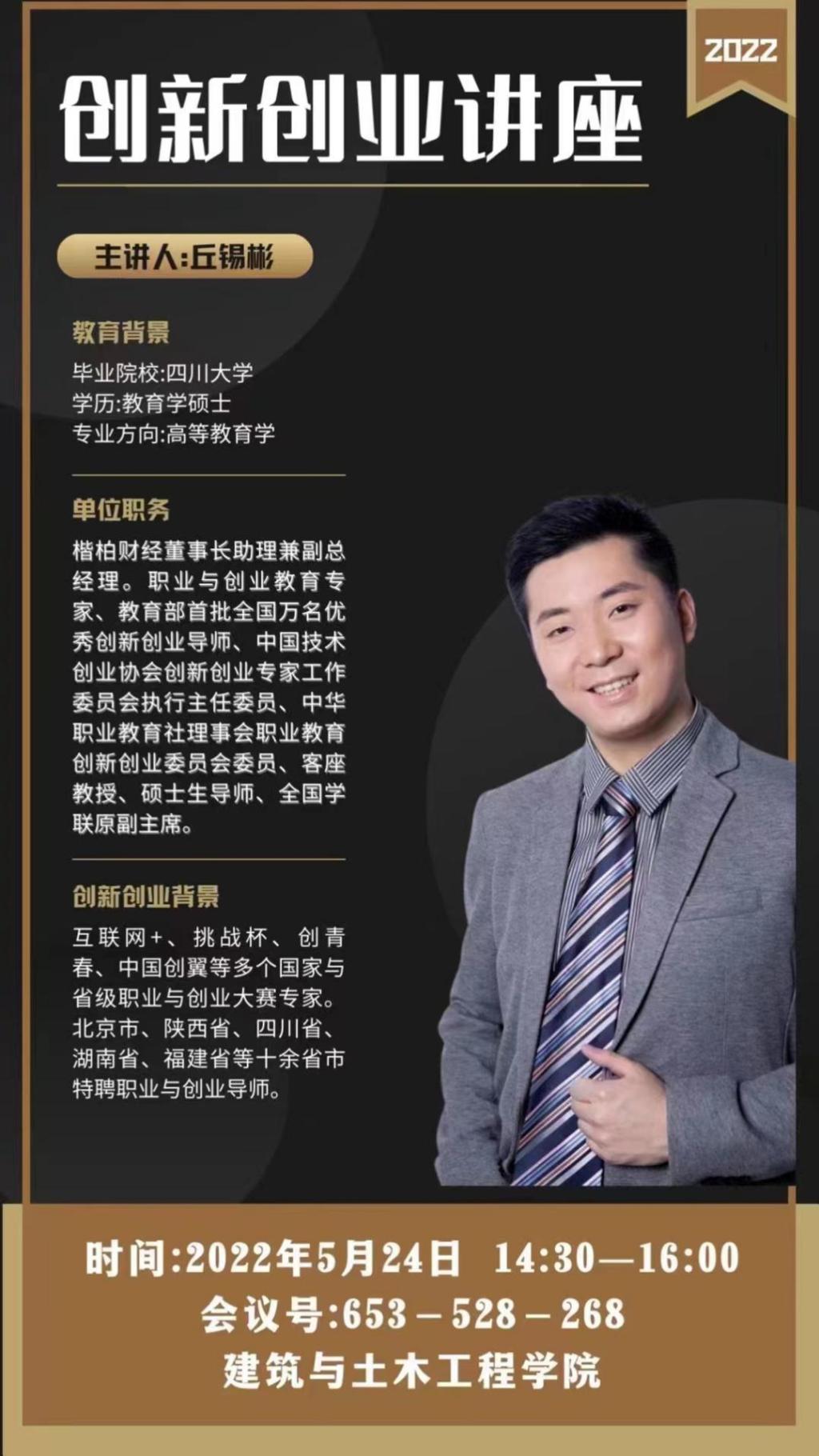 举行互联网+大学生创新创业专题讲座,本次讲座有幸邀请到四川大学教育学硕士、楷柏财经董事长助理兼副总经理丘锡彬作为主讲嘉宾。会议采用线上直播的方式进行,由测绘系系主任姚远主持,全院部分老师和学生共一百余人参与。