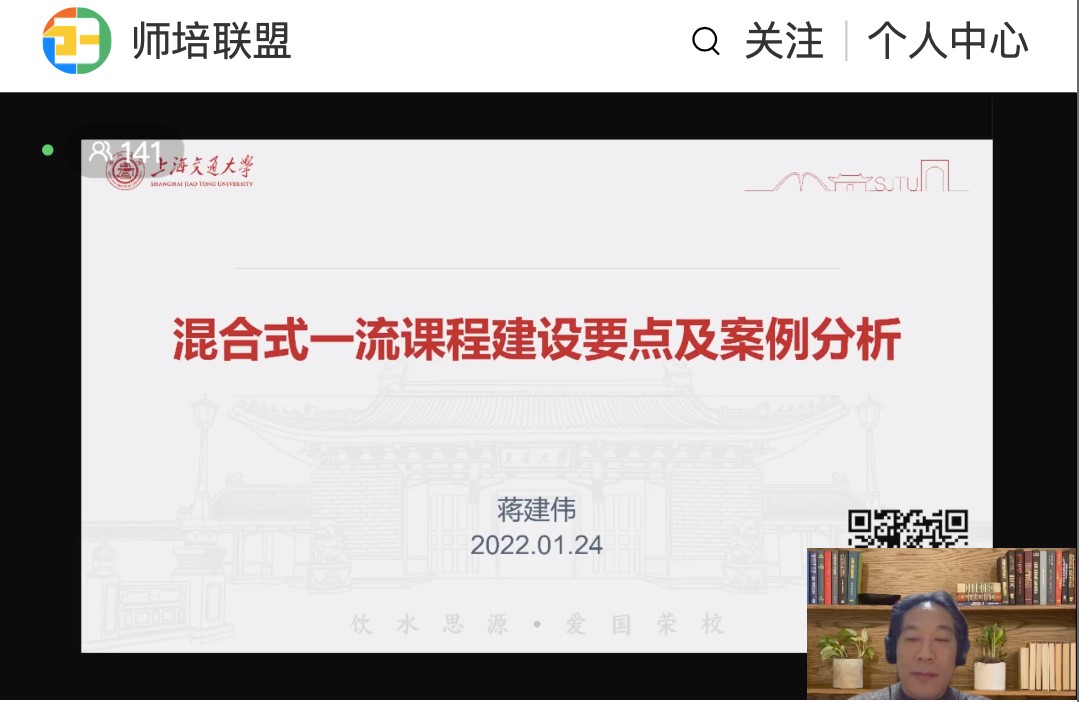会上,陕西师范大学何聚厚教授、哈尔滨工业大学战德臣教授、上海交通大学蒋建伟教授等三位教学名师分别作了《混合式教学一流课程申报及特色亮点凝练》、《混合式教学改革的理念与实践》、《混合式一流课程建设要点及案例分析》等专题报告。