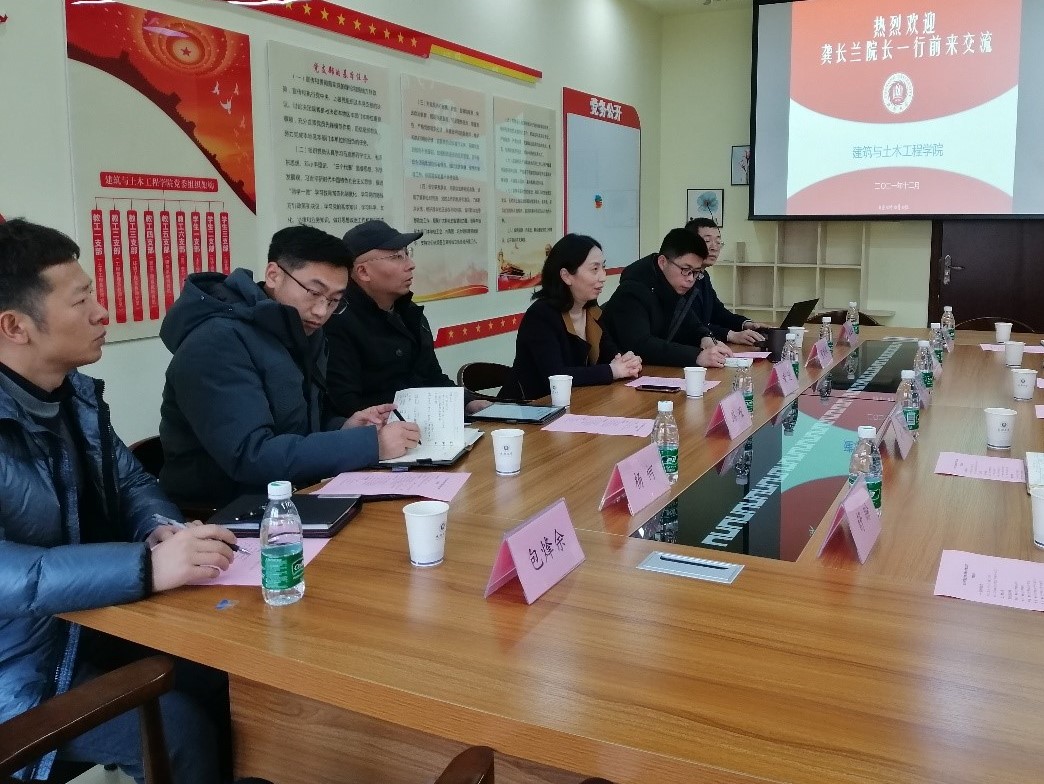 在教学科研、专业建设、社会服务、学科竞赛、人才培养模式等方面的情况。冉迅副院长就教育与设计学院的办学情况做了详细介绍。随后双方对一些具体的事项和做法,如订单式人才培养模式、BIM课程建设、科研成果转化等,展开了更加深入的探讨。双方表示今后将继续加强交流,互帮互助、共同进步。
