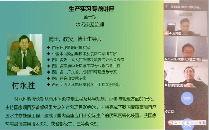 12月6日上午,在学院领导的支持下,环境工程专业组织开展了生产实习第一期线上讲座。