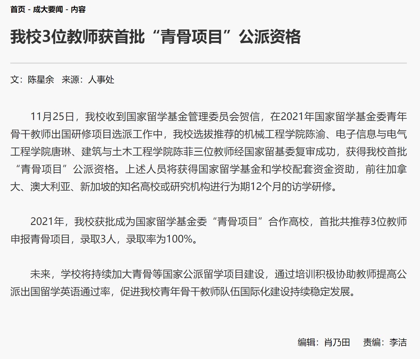 按摩无码 陈菲老师获首批“青骨项目”公派资格