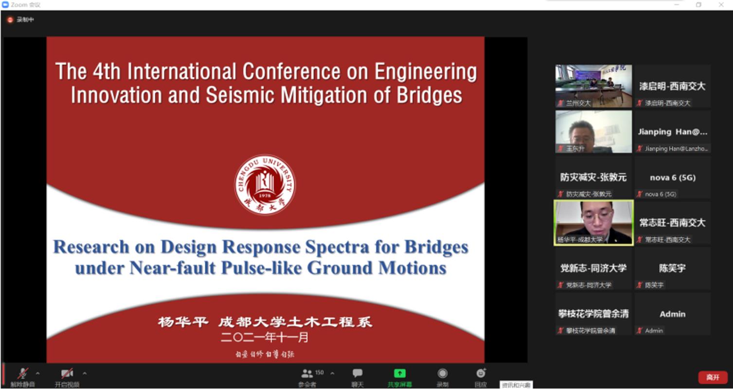 由湖南大学、同济大学共同主办,陈政清院士担任学术委员会主席,兰州交通大学等多家教学科研单位共同协办的第四届桥梁结构防震减灾与工程创新国际会议,于2021年11月20-21日克服疫情影响,采用线上形式召开。