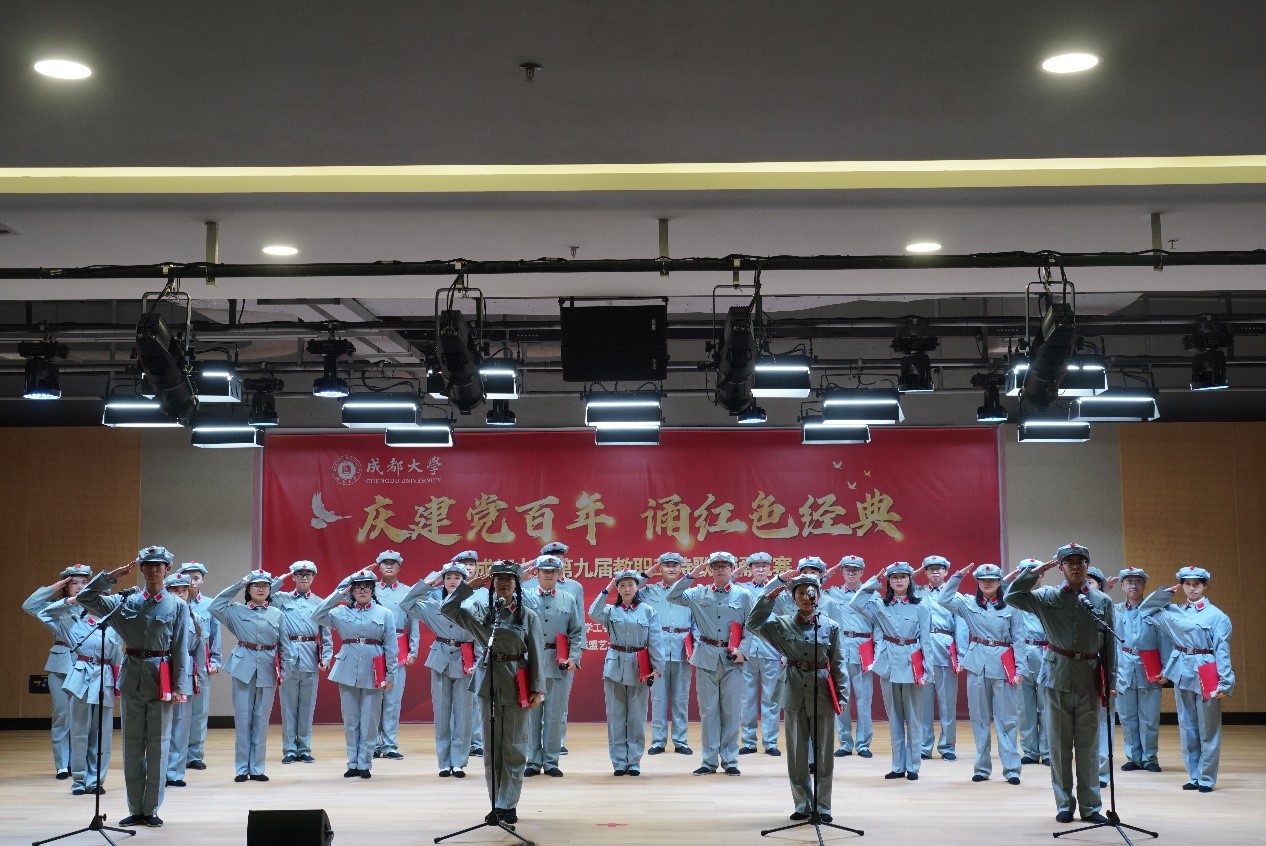 为歌颂中国共产党百年伟大历程的辉煌成就,继承和发扬党的光荣传统和优良作风,11月2日下午,由成都大学工会委员会和党委学生工作部(学生处)主办、中国-东盟艺术学院音乐与舞蹈学院承办的以“迎建党百年 诵红色经典”为主题的成都大学第九届教职工诗歌朗诵比赛在东盟院区C-1015多功能厅举行。