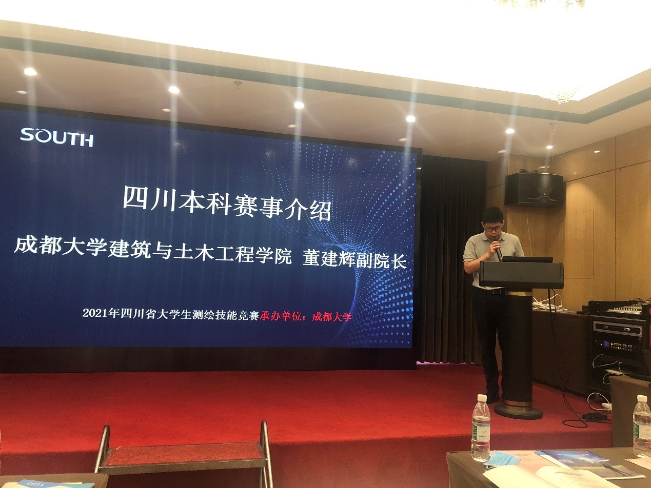 副院长董建辉代表2021年第七届四川省大学生测绘技能竞赛(以下简称“省赛”)的承办单位成都大学向参加研讨会的嘉宾介绍了省赛的前期准备工作和目前的进展,并表示后期将进一步在四川省测绘地理信息学会和本届省赛裁判组的指导下,做好选手培训、裁判研讨、高校交流及媒体互动等相关工作,不辜负各级领导和各兄弟院校的希望,在各位专家和兄弟院校老师的帮助下,共同将本次省赛办好,从而实现后疫情时代“以赛促教,以赛促学,以赛促改,以赛促建”的办赛目标。