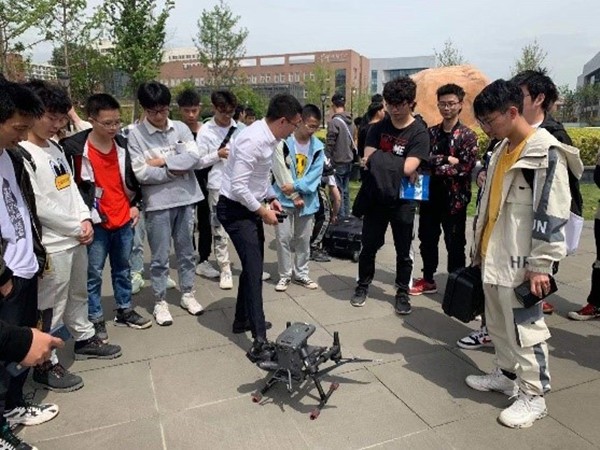 课程理论教学围绕无人机平台结构、倾斜摄影测量技术流程和实际房地一体项目具体实施等理论内容展开,教学过程中学生们积极参与讨论与问答,课堂气氛活跃,教学效果良好。课程实践教学以成都大学综合楼地面为起飞点,实操演示了大疆M200无人机系统倾斜摄影过程,激发了学生们极大的兴趣。课程授课老师鲁艺玲表示,此次无人机航飞实践和后期课程的数据处理相结合,不仅有效提升了授课质量,同时为后续开展摄影测量实习奠定基础。