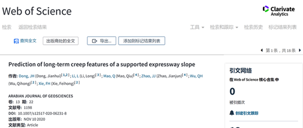 土木工程系董建辉博士以第一作者在工程技术领域著名期刊《Arabian Journal of Geosciences》(中科院SCI四区期刊,影响因子1.327)上发表了一篇题为“Prediction of Long-Term Creep Features of a Supported Expressway Slope”的最新研究成果。