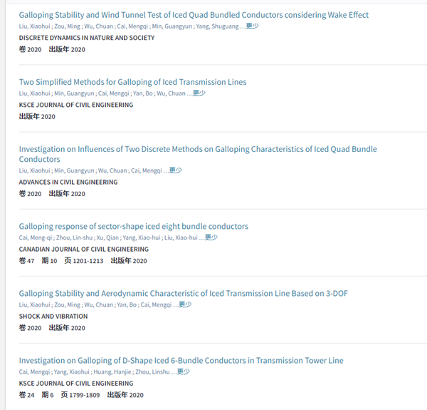 这几项研究围绕覆冰分裂导线的风致振动展开系统研究。综合采用风洞试验,理论研究对各子导线的气动特性的影响。旨在对特高压输电线风致振动现象进行系统深入的研究,具有重要的理论价值、现实意义和广阔的工程应用前景。同时,在2020年蔡萌琦博士及其所在科研团队还在国内学术期刊上合作发表论文17篇。