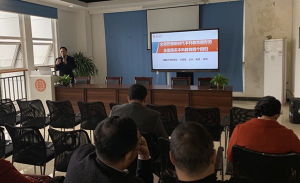 10月27日下午,受学院邀请,成都大学教务处处长叶安胜教授在建工楼二楼会议厅为全院教职工开展了一堂题为“全面把握新时代本科教育新形势,全面落实本科教育四个回归”的精彩讲座。
