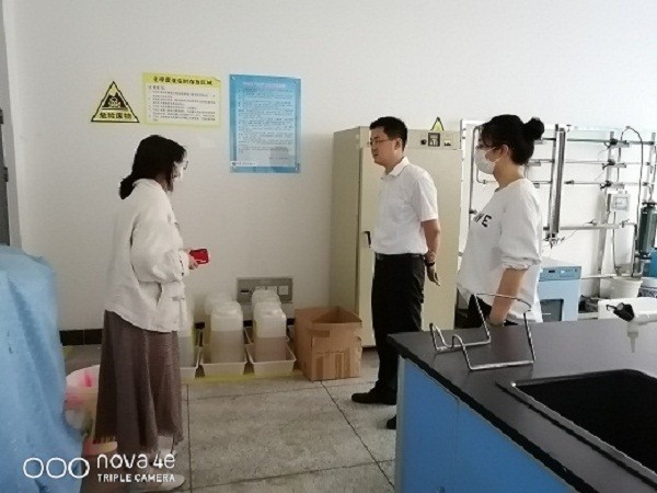 在检查过程中,吴院长听取各位实验老师在疫情期间如何开展工作,实验室发展遇到的瓶颈,探讨解决方案;排除安全隐患;核查了危化品库房的试剂数量并进行了抽样检查。目前,各实验室能够按照学校要求正常运行,能为返校学生提供良好的实验条件。吴院长强调在疫情期间一定要强化实验室安全红线意识,按学校要求加强管理。实验室主任高珊表示,一定严格按照学校疫情防控的要求,抓实抓细实验室安全工作。