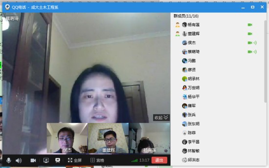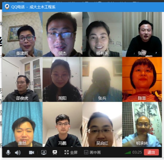 会上,首先对日常线上教学进行讨论,发现普遍存在由于网络条件差、或硬件实施等原因导致线上教学效果差的问题。与会老师都积极分享在过去四周线上教学积累的经验,总结得出在直播教学时可以采用录屏并及时上传的方式,可供学生反复学习。然后,所有老师按专业方向分享了毕业设计的最新进展情况,与以往面对面指导相比,线上指导学生进度较难把控,大部分学生进度存在比原计划稍滞后的情况,老师们相应采取了各种积极措施,如定制时间节点、增加答疑频率、打电话一对一交流等方式。在教师们的努力下,毕业设计总体进度虽有滞后,但处于可控范围内。同时,董建辉老师对目前土木系学生就业情况进行通报,由于疫情影响给就业工作带来了一定困难,董建辉老师号召各位老师利用自身社会资源多为学生创造就业机会,老师们纷纷表示赞同。此外,学院科研秘书蔡萌琦老师,对今年自然科学基金的申报相关信息进行了讲解,得到了老师们的积极响应。