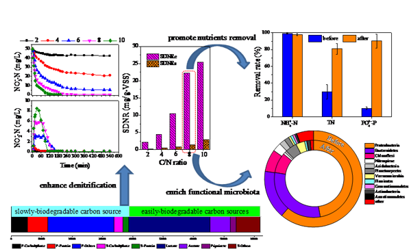 该研究将厌氧发酵技术与污水深度处理技术有机结合,实现了城市有机废物的协同控制。研究以餐厨垃圾为例系统分析了城市有机废物厌氧发酵过程的物质转化特点、发酵产物作为碳源实现污水高效处理的特征,并结合基因分析技术,深度解析了发酵碳源强化污水深度处理的微生物机制。该研究成果解决了城市发展过程中易降解有机固废难以资源化处置、城市污水处理效率因缺少碳源而受限的矛盾,为我国城市有机废物资源化利用和污水高效处理,构建绿色公园城市提供了新的思路。