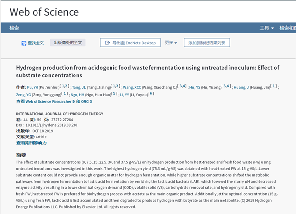 工程管理系蒲云辉老师以第一作者及成都大学第一单位在工程技术领域著名期刊《International Journal of Hydrogen Energy》(中科院二区期刊,影响因子4.084)上发表了一篇题为“Hydrogen production from acidogenic food waste fermentation using untreated inoculum: Effect of substrate concentrations”的最新研究成果。