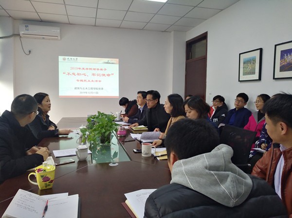 党委在建工楼219会议室召开“不忘初心、牢记使命”党员领导干部专题民主生活会。联系学院的副校长苏蓉应邀出席会议。学院党委书记黄进主持会议。学院班子全体成员、党委委员、师生党支部书记、各系室主任、工会主席以及学校主题办周宗旭老师参加会议。