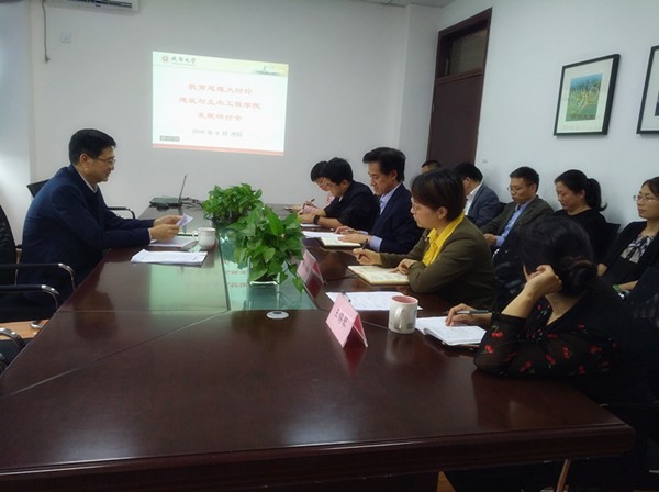 在建工楼219会议室开展教育思想大讨论之学院发展研讨会,副校长唐毅谦出席会议并作专题指导。学院班子成员、系室主任、教师代表参加会议。