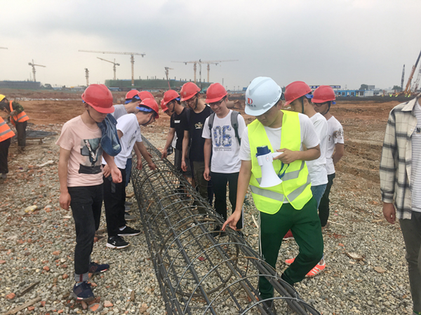 在此项目工作的学院2014级土木工程毕业的优秀学长黄瑞,带学弟学妹们参观了他们公司负责的部分,同学们边参观边结合理论思考,向黄瑞学长请教问题,学长也热心地给大家答疑解惑。