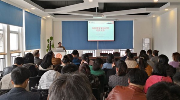 于学院二楼大会议室召开了本科教学工作审核评估动员大会,学院领导和全体教师参加了本次会议。