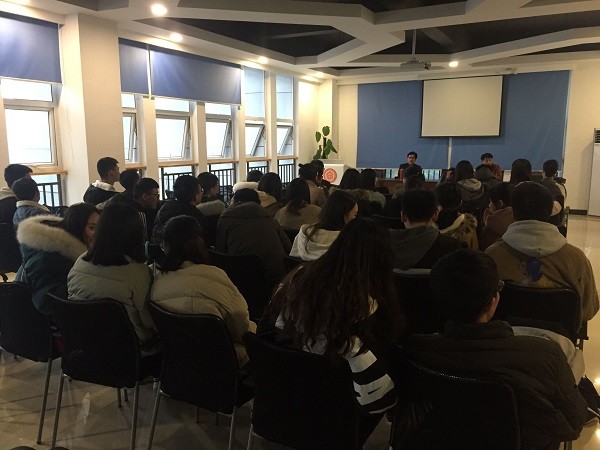 于学院会议室召开考研指导会,院长李文渊、各系系主任与部分专业教师为考研学生进行指导。
