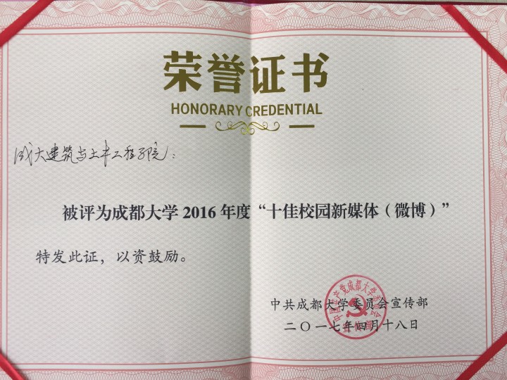 4月18日下午,成都大学2016年度十大新闻人物颁奖典礼在学术报告厅隆重举行。同时颁发了成都大学2016年十佳新媒体微博、微信奖。按摩无码 微信、微博在学校各部门中脱颖而出,收获“双十佳”荣誉称号。
