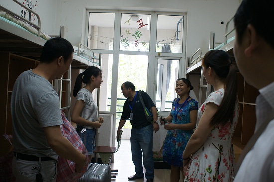 党委书记,院长等领导来到宿舍检查指导工作,进入寝室里与同学、家长们亲切交流,关心他们的生活与学习,并寄托对新生美好的希望,谨记校训,奋发自强,愿新生们大学毕业后不悔青春,学有所成!