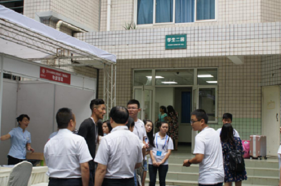 如期举行2016年秋季新生入学迎接活动,成都大学新生迎接志愿者早早来到宿舍楼下做好了迎接准备工作,等候每一位学弟学妹的到来。