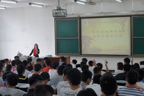 此次宣讲会通过舆论引导、法律规范、政策宣传等多种方法的有机结合,加深了同学们对国家征兵政策的了解,调动了适龄大学生参军报国的责任感和使命感 ,为我校征兵工作的进行起到了有力的推动作用。