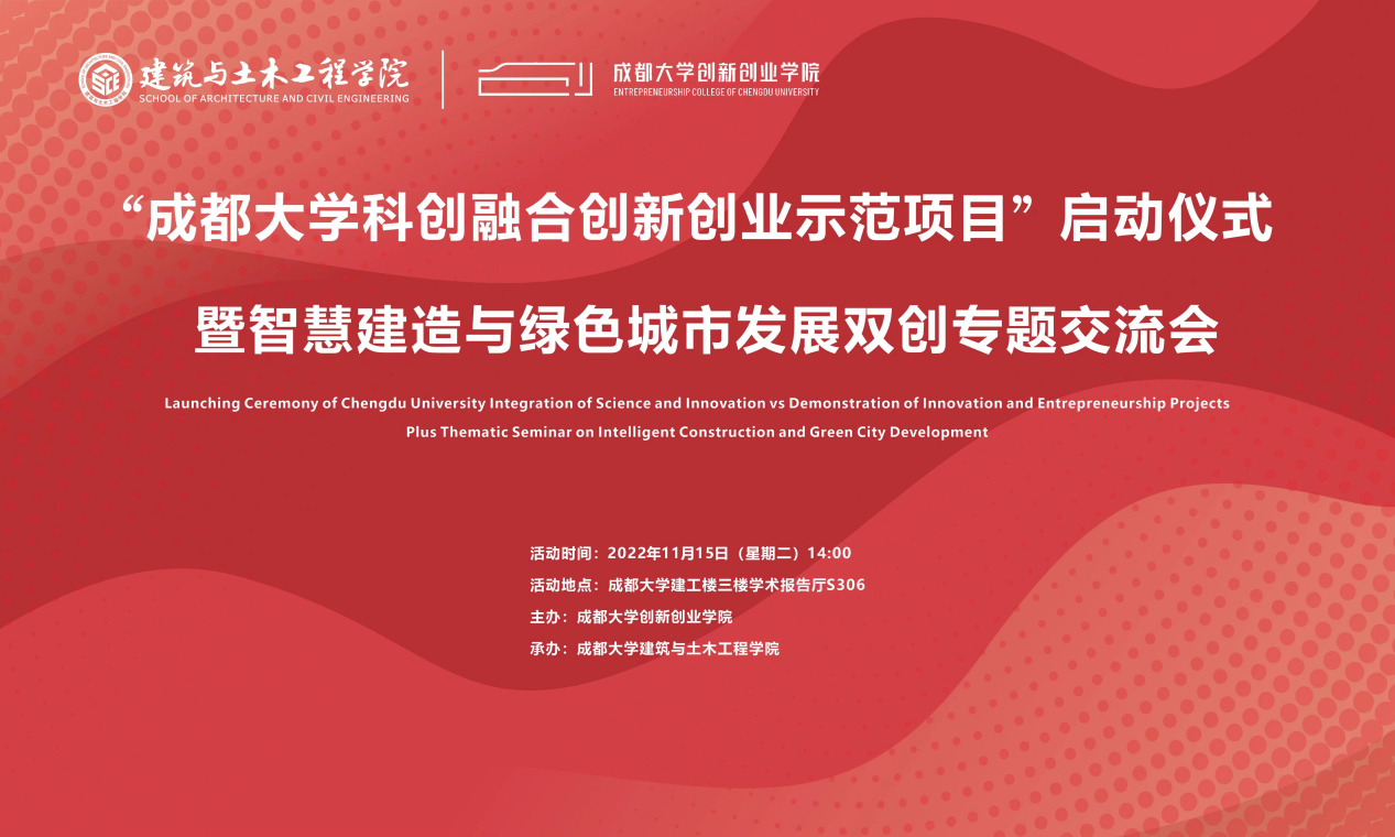 于建工楼三楼学术报告厅S306举办了“成都大学科创融合创新创业示范项目”启动仪式暨智慧建造与绿色城市发展双创专题交流会。成都大学创新创业学院陈烈院长、国家级众创空间创梦空间董事长潘希鸿、按摩无码