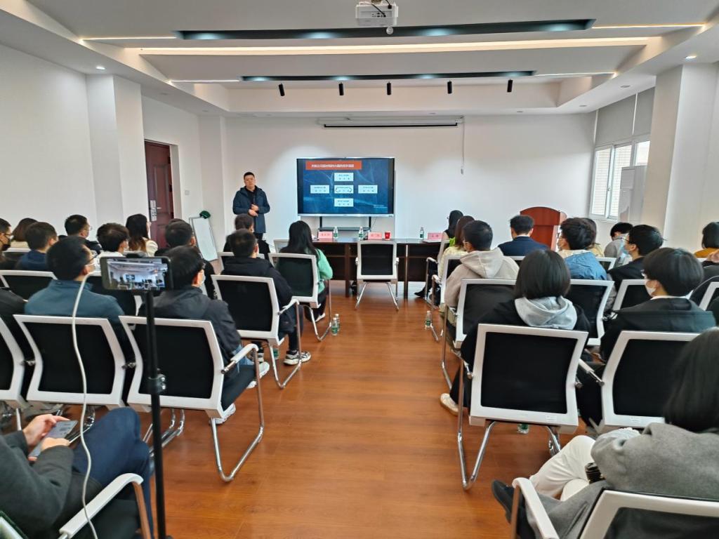 “互联网+大赛”省级银奖项目指导老师和学生代表进行了项目经验分享。他们结合自身参赛实践经历向学院青年博士与同学们作参赛经验分享,并且建议同学们能积极参加科创竞赛,在比赛中学习到技能和能力。